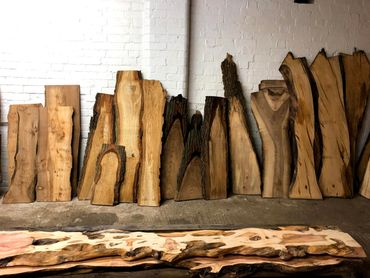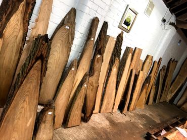We have all sorts of beautiful pieces available in all sizes from small coasters up to large slabs. All of the timber is completely natural with live waney edges and hasn't been treated, leaving the customer to finish the wood to their desired look.